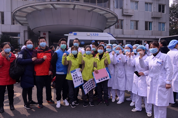 2020年2月13日中午12:00,以该院17名(医生5名、护士12名)队员为主体,与来自成都市第四人民医院、成都市第五人民医院、成都京东方医院7名队员,共计24名队员集结完毕,组成了成都市第五批抗击新冠肺炎援鄂医疗队出征。