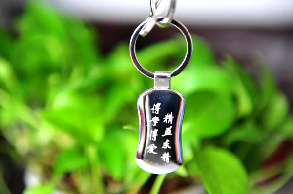 钥匙扣正面刻着毕业生同学的姓名和学号,