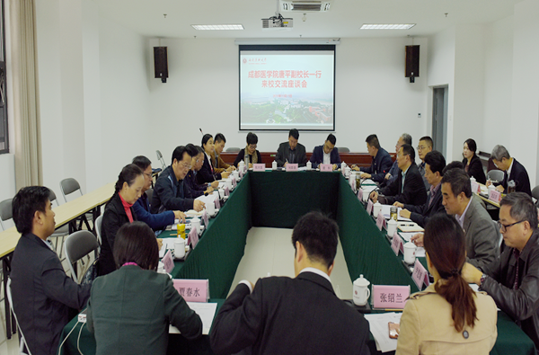 10月15日,为学习兄弟院校在校院两级管理模式改革方面的制度建设、运行机制以及举措等方面的经验和做法,学校党委常委、副校长唐平带队,党委办公室、校长办公室、发展规划处、人事处等单位(部门)等相关领导和工作人员一行14人赴西南医科大学考察学习。西南医科大学校长何延政、副校长彭刚及相关职能部门负责人参与座谈交流,座谈会由彭刚主持。