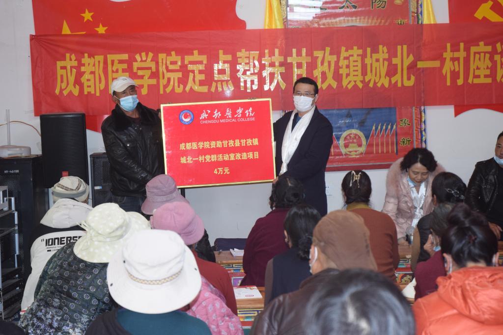 28日下午,成都医学院资助甘孜县城北一村活动室改造仪式顺利举行。为继续改善帮扶村落的基础设施条件,根据驻村干部实地调研和村委活动室的工作需要,学校资助城北一村活动室升级改造项目4万元。