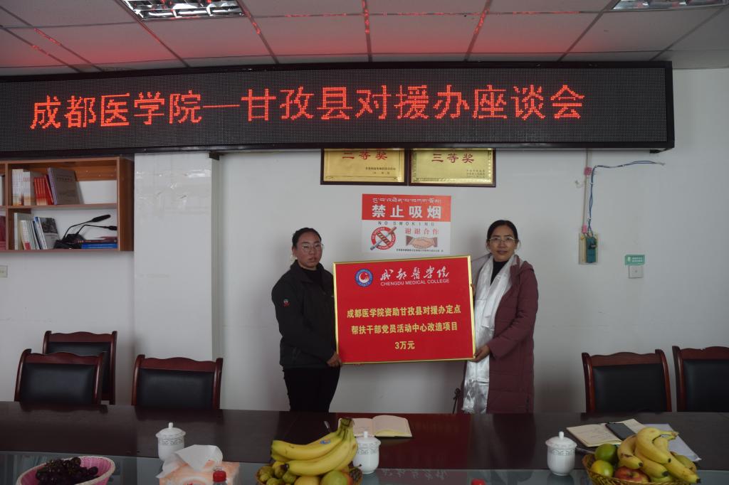 在甘孜县对援办,成都医学院资助甘孜县对援办定点帮扶干部党员活动中心改造座谈会召开。为加强同定点帮扶地的对接联系,助力甘孜县对援办解决问题和困难,帮扶党员干部凝心聚力,学校资助3万元用于甘孜县对援办定点帮扶干部党员活动中心改造项目,以更好地服务于甘孜县的发展与建设。