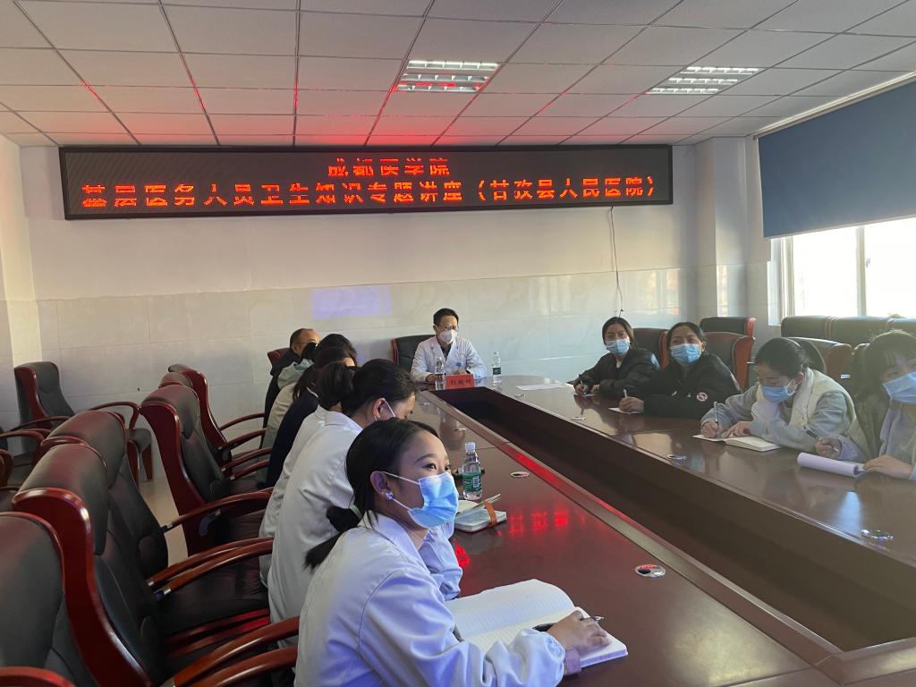 定点帮扶活动期间,学校临床医学院、第一附属医院统战专家、学校知联会会员、全科医学科副主任彭朝明来到甘孜县人民医院,为临床医务人员开展了“社区心血管疾病筛查、风险评估及管理”的专题讲座,为基层医务人员丰富了知识,开拓了视野,赢得了好评。