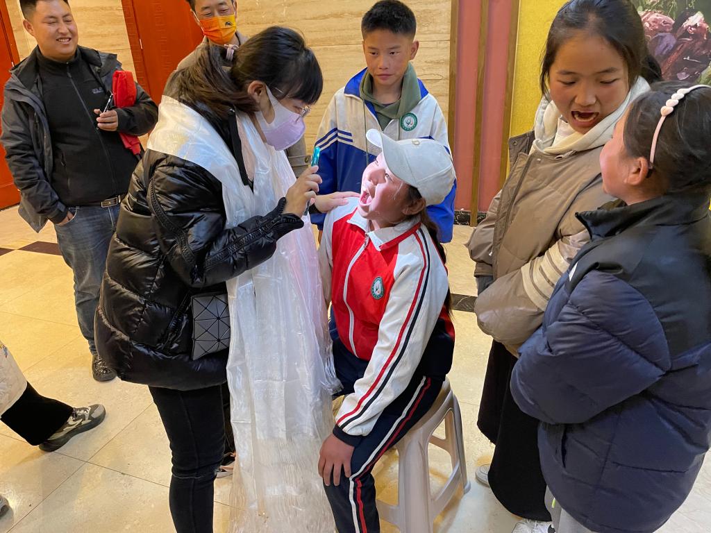 在甘孜县群众文化中心,学校通过发动社会力量(成都俊马密封科技股份有限公司),连续5年资助甘孜县6名家庭困难学生,发放现金1.2万元,有力减轻家庭负担,激励学生好好读书,同时口腔科专家李菊还为同学们检查了口腔卫生。