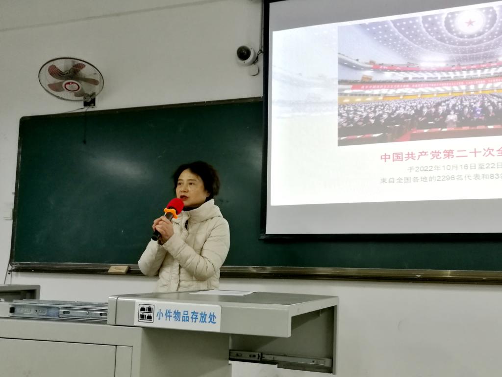 校党委书记余小平结合自身学习和工作经历,为中医学专业的学生们深入细致地阐释了党的二十大精神,重点讲授了党和国家过去5年的工作和新时代10年的伟大变革。她勉励同学们,当代中国青年生逢其时,施展才干的舞台无比广阔,实现梦想的前景无比光明。她希望同学们努力学习、增长才干,坚持学思用贯通、知信行统一,切实把党的二十大精神落实到成长成才的全过程、各方面,做有理想、敢担当、能吃苦、肯奋斗的新时代好青年,让青春在全面建设社会主义现代化国家的火热实践中绽放绚丽之花。